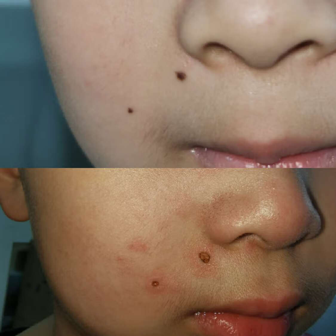 做完的这个坑会比色素痣大一点(不然色素痣就做不干净容易复发)