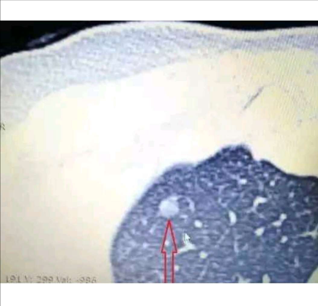 图片1:典型的肺胸膜下实性结节,为慢性炎症灶