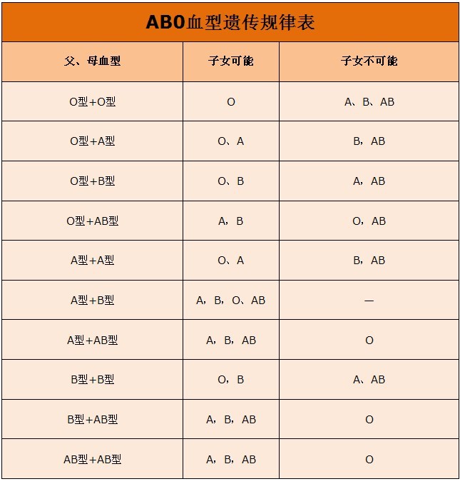 血型遗传表