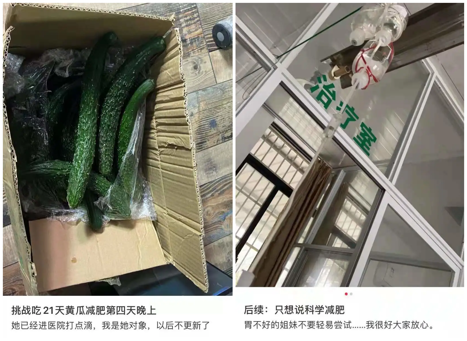网友们抱着3月4月不减肥,5月6月徒伤悲的心态,为了急着减肥也是奇招百出、煞费苦心,这不,前几日话题#别轻易尝试黄瓜减肥#冲上了热搜。