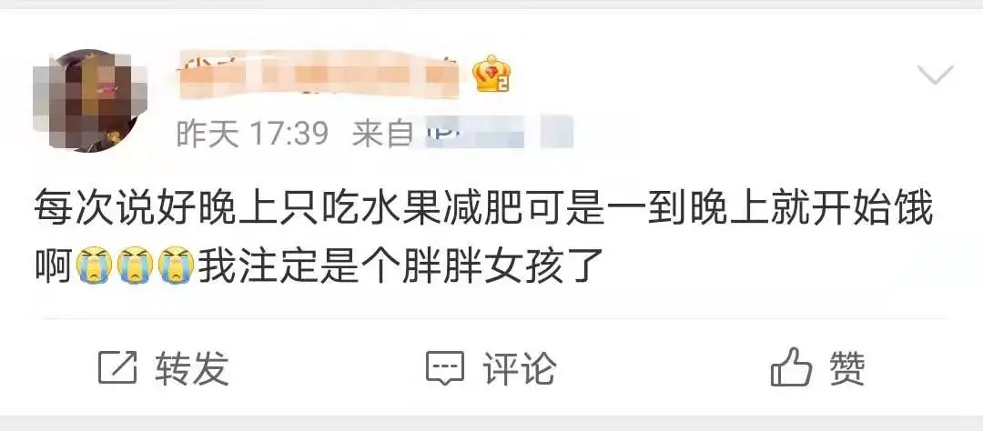 减肥期间不能吃晚饭,睡前一定要忍住饥饿。减肥er们一边用自己的意志力抵抗“诱惑”,一边用自己的生命做着“慢性自杀”的行为。